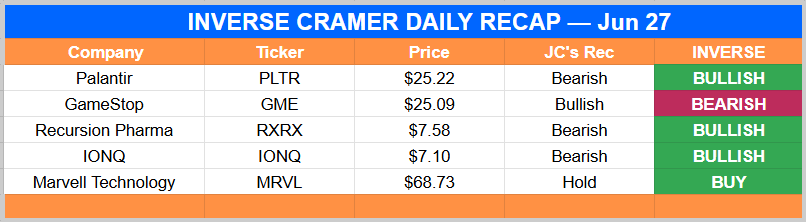 🙃 Inverse Cramer Weekly Update – June 30